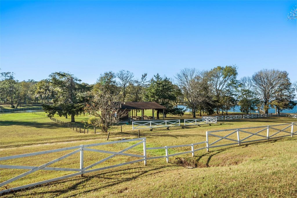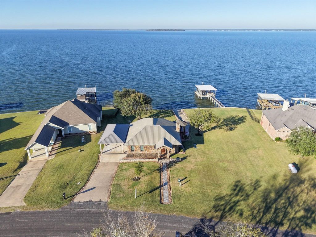Set on large waterfront lot, this stone-front 1.5-story home with metal roof on Lake Livingston offers 3 beds and 3 full baths. Two-car attached updated carport with workshop adds functionality. Inside you’re immediately captivated by expansive lake views from most rooms. New Andersen windows are featured throughout. Gourmet island kitchen offers abundant counter space, ample cabinetry, and breakfast bar that flows into the dining area with vaulted ceilings and warm wood accents. Spacious lakeview living room with fireplace opens to massive sunroom highlighted by wood ceilings, wall of windows and double doors framing breathtaking water views. First floor includes primary bedroom, secondary bedroom, and guest-friendly full baths with dual access. Upstairs, private primary retreat showcases panoramic lake views, built-in storage and recently renovated spa-inspired bath. Outdoor living is equally impressive with back deck, lakeside gazebo with fireplace and walkway leading to the water.