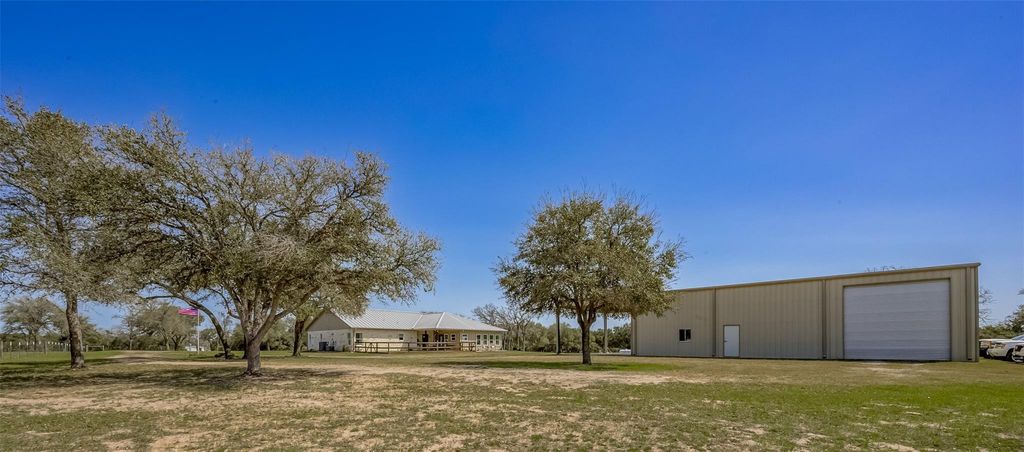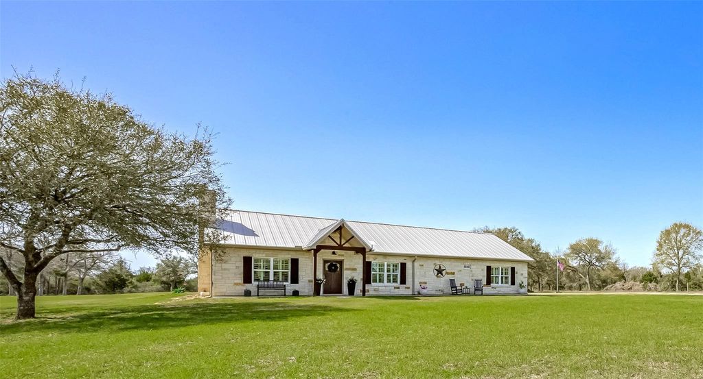Nestled in the gated community of Oakridge Ranch, this one offers refined country living on 14.931 ag-exempt acres with a mix of pasture & woods. Featuring a stunning +/- 2,915 sf custom limestone home (2018) with 3 bedrooms (one used as a den), 2.5 baths, high-end finishes, soaring beam ceilings, a floor-to-ceiling limestone fireplace & a chef’s kitchen with custom cabinetry, leathered granite, premium appliances & large pantry. The light-filled layout includes a sunroom with wet bar. The private primary suite offers a sitting area, spa-like bath & custom closet. A gently used 1,680 sf guest home (2001) includes 4 beds, 2 baths, covered decks & separate utilities thus ideal for guests or long-term rental. Additionally, outside boasts a 2,520 sf metal insulated workshop, RV hookup, 100-yard shooting range, fencing & multiple outbuildings. Equipped with a Generac generator, this property is designed for both comfort & functionality. This one is an absolute MUST SEE!