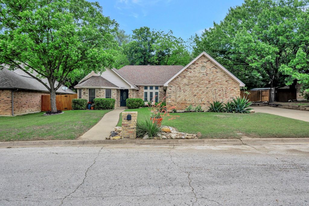 This spacious single story home offers over 2,000 square feet of comfortable living on a generous quarter acre lot in a convenient Fort Worth location. The inviting living room features exposed beams and a brick wood burning fireplace that creates a warm and welcoming focal point. Laminate flooring flows through the main areas, adding both style and easy maintenance. The kitchen is well equipped with an electric cooktop, oven, microwave, and a breakfast bar that opens to the living space, making it ideal for everyday living and entertaining. A dedicated office with a bay window provides the perfect spot for working from home or a quiet retreat. The primary suite is a relaxing escape with trayed ceilings, dual vanities, a garden tub, separate shower, and a walk in closet. Step outside to a large backyard with a covered patio that is perfect for enjoying the outdoors. Conveniently located with easy access to I30 and I820, this home offers both space and accessibility. Schedule your private showing today and come see everything this home has to offer.