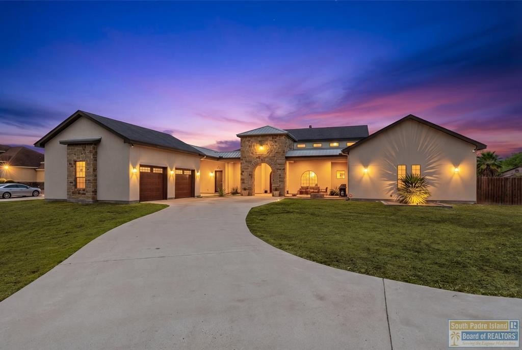 Stunning farmhouse modern home on 1.58 acres of resaca-front property in San Benito, TX. Enjoy a private outdoor retreat with fishing from your backyard (catfish, bass, gar, crappie) and incredible birding. The home features 20+ ft ceilings in the living area and 12+ ft ceilings throughout, creating an open, airy feel. Interior highlights include: maple cabinetry, granite countertops, and a fossil stone wood-burning fireplace. Built for efficiency with spray foam insulation, energy-efficient windows, 2 HVAC systems, and 2 water heaters. Additional features include whole-house water filtration, solid wood doors, large patio doors, and metal roof accents. Exterior offers a spacious covered patio, fire pit, gutters, and ample parking with a 2-car garage plus a separate 1-car garage. A rare blend of space, style, and nature in the RGV. 15 minutes commute to Brownsville. Quick highway access for those needing to travel for work.