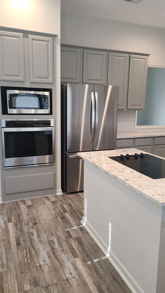 You must see this completely renovated stunner! Looks like a new house! Updates include fresh paint, new water resistant vinyl plank flooring, new granite counter tops in kitchen and bath, completely updated master bathroom and guest bathroom, new faucet fixtures, new door fixtures, new recessed ceiling lights, new ceiling fans in main living area and bedrooms, new built in kitchen appliances, new fireplace surround. New refrigerator! Call now - this one will not last!