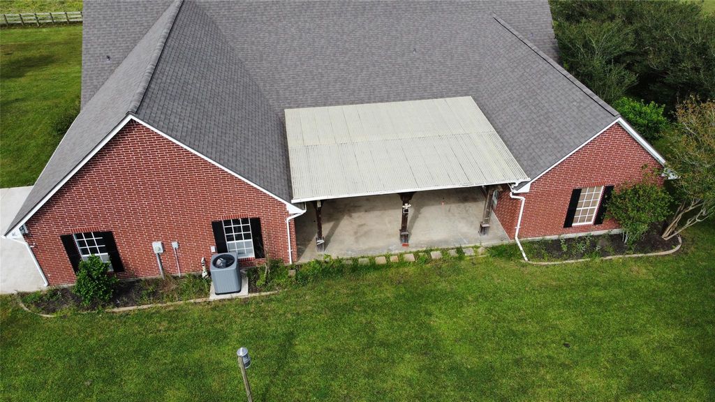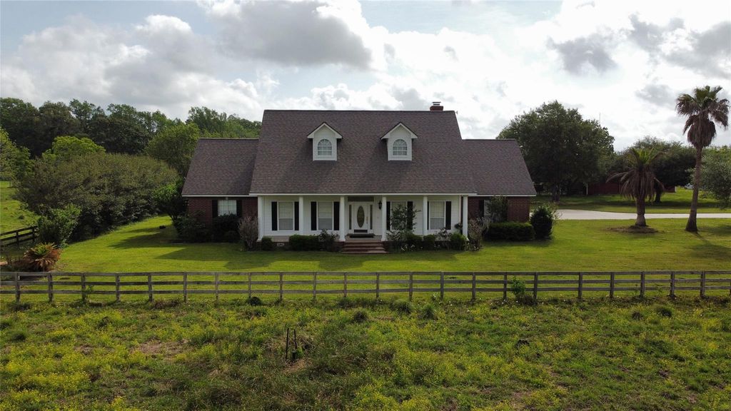 A Liberty, Tx Jem. This home is situated on 13.38+/- ac. Custom-built 3477sqft home features a formal living with corner fireplace, formal dining room with built-in, hardwood, tile and carpet flooring and high ceilings. Kitchen has stainless steel appliances, granite counter tops, island, dining and breakfast bar, pantry and a built-in hutch with glass front doors. A walk-in pantry perfect for small appliance storage and laundry room with plenty of storage. The oversized primary bedroom has a makeup counter, hardwood floors, on-suite bathroom with a nice size closet and French doors leading outside. The secondary bedrooms are all very nicely sized, one with a private on-suite bath. Family room that looks out the back of the home with French doors leading to the pergola perfect for gathering and cookouts. There is pole barn, chute to load animals and some water troughs. Property is fenced and crossed fenced for livestock. Currently Ag exempt. A new roof was installed summer of 2025.