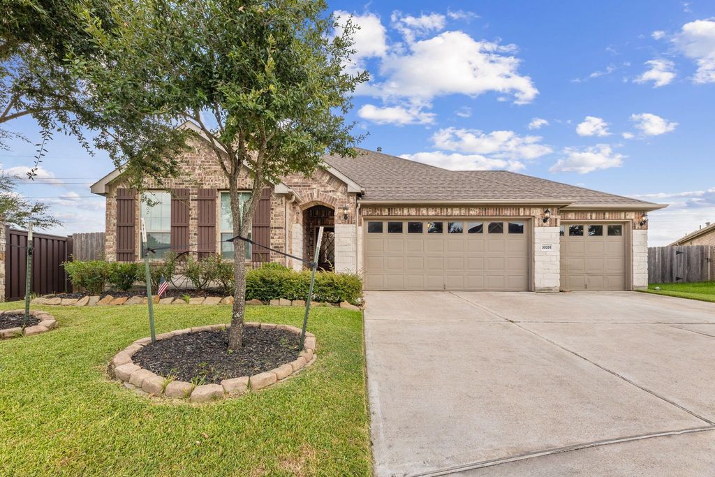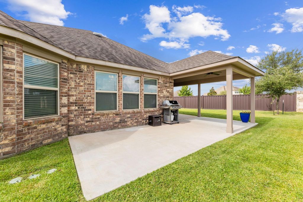 This home checks all the boxes.......4 bedrooms, one can be used as a study, THREE car garage with triple wide driveway, open kitchen-family room with large island, split plan with large closet in primary suite, computer nook/study desk area in the kitchen, oversized backyard, enlarged patio with cover and ceiling fans, tile throughout except for bedrooms, spacious utility room, This floorplan lives much larger than the square footage.