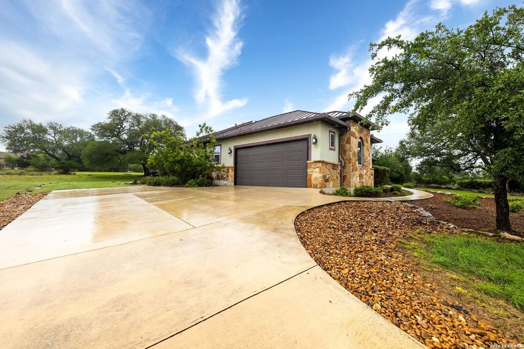 Custom built and thoughtfully designed, this exceptional 3 bedroom, 2.5 bath home in the highly desirable Vintage Oaks community in New Braunfels offers refined Hill Country living on just over an acre, surrounded by some of the most beautiful oak trees in the neighborhood. The open concept layout is filled with natural light from expansive windows and features high ceilings throughout. The spacious kitchen is designed for both function and style, showcasing granite countertops, a large island, gas cooktop, built-in oven, oversized sink, walk-in pantry, and a bright breakfast area. A separate dining room with French doors provides an ideal space for gatherings and special occasions. The living room is generously sized with built-in shelving and a fireplace, creating a warm and inviting atmosphere. The primary suite is located on the main floor and includes a sitting area along with a luxurious en suite bath featuring separate vanities, a large soaking tub, walk in shower, and dual walk