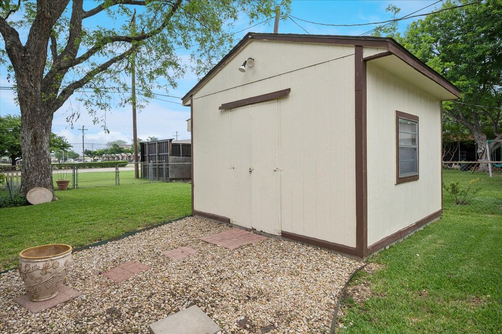 Welcome to this charming home that was built in 1960 and has been thoughtfully maintained over the years. Nestled in a quiet established neighborhood, this property offers timeless character, solid construction, and great potential for personalization. Inside you will find beautifully refinished hardwood floors and a vintage tiled bathroom that highlight its original charm. Large windows fill the home with natural light, creating a warm and inviting atmosphere. With a functional layout and great bones, this home is the perfect canvas to update while preserving its appeal. Enjoy the screened in porch overlooking a spacious fully fenced backyard. The outdoor space includes a dedicated garden area and two storage sheds ideal for gardening, hobbies, or extra storage. Conveniently located within walking distance to elementary schools and the shops, dining, and charm of historic Old Town Lewisville, this home offers both comfort and community. A rare opportunity to own a well cared for gem in a peaceful setting. Don’t miss it..