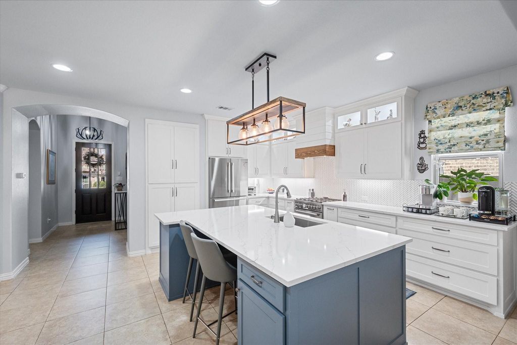Step into the heart of this Viridian home and discover a chef-inspired custom kitchen, completed in January 2023. Designed for both beauty and function, it boasts upgraded Bosch appliances, sleek custom cabinetry with pull-out pantry drawers, and an oversized island that invites gatherings and culinary creativity. Every detail—from the premium finishes to the abundant storage—was thoughtfully chosen to elevate everyday living and entertaining. This stunning 4-bedroom, 3-bathroom residence flows seamlessly from the kitchen into the dining and living areas, where a cozy fireplace creates a warm focal point. The first-floor primary suite offers a spacious ensuite bath, complemented by two secondary bedrooms and a full bath. Upstairs, a versatile flex room provides endless possibilities—game room, office, or media space—alongside an additional bedroom and full bath. Outdoor living is equally inviting with a covered patio and a freshly re-sodded, low-maintenance backyard perfect for relaxation or entertaining. Updated fixtures throughout add a touch of modern style, completing this thoughtfully designed home in the vibrant master-planned community of Viridian. Living in Viridian means access to resort-style amenities including pools, tennis and pickle ball courts, parks, trails, and lakes, all within a highly sought-after community just minutes from shopping, dining, and entertainment with easy access to Hwy's 183, 360 and I-30. Modern comfort and community - what more could you ask for? THIS HOME QUALIFIES FOR GRANT PROGRAMS OFFERING UP TO 2.5% OF LOAN VALUE IN CLOSING COSTS!