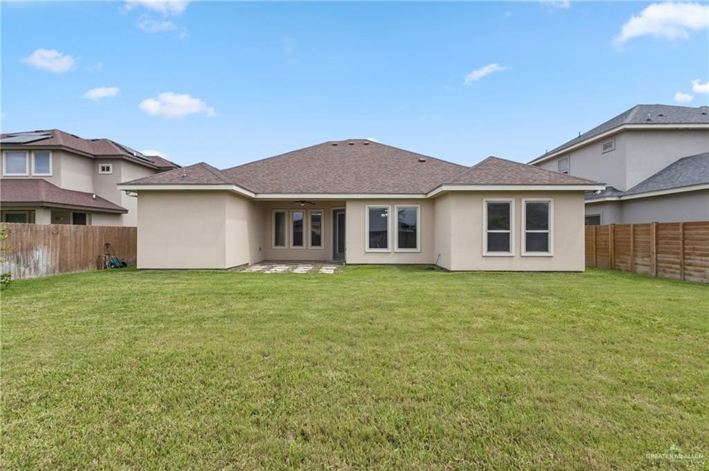 Spacious and inviting, this beautiful home features an open-concept design that flows effortlessly between the living, kitchen, and dining areas. Multiple windows provide abundant natural light and views of the spacious backyard. The kitchen is equipped with warm wood cabinetry and a generous island with bar seating, Kitchen appilances include electric smooth cooktop, wall oven, microwave, refrigerator, and dishwasher. The home features 4 bedrooms, 4 bathrooms, and high decorative ceilings. Situated in the Sugar Oaks subdivision in Edinburg, it provides quick access to hospitals, shopping, UTRGV, the courthouse, and major roadways. Schedule your viewing appointment.