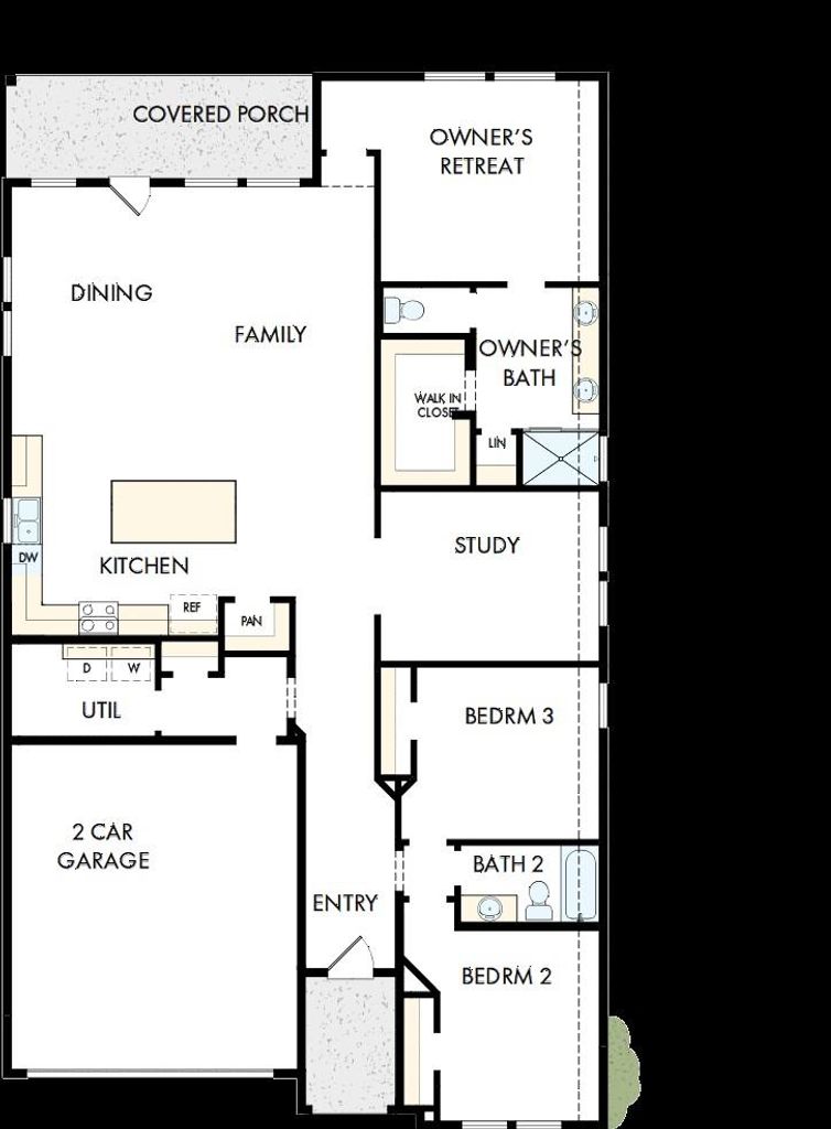 The Owner’s Retreat offers a serene escape with spa-inspired finishes, warm cabinetry, soft neutral tile selections, and polished brass fixtures that create a calming, upscale atmosphere. Secondary bedrooms are generously sized and share a beautifully appointed bath featuring contemporary lighting and sleek hardware for a modern touch.