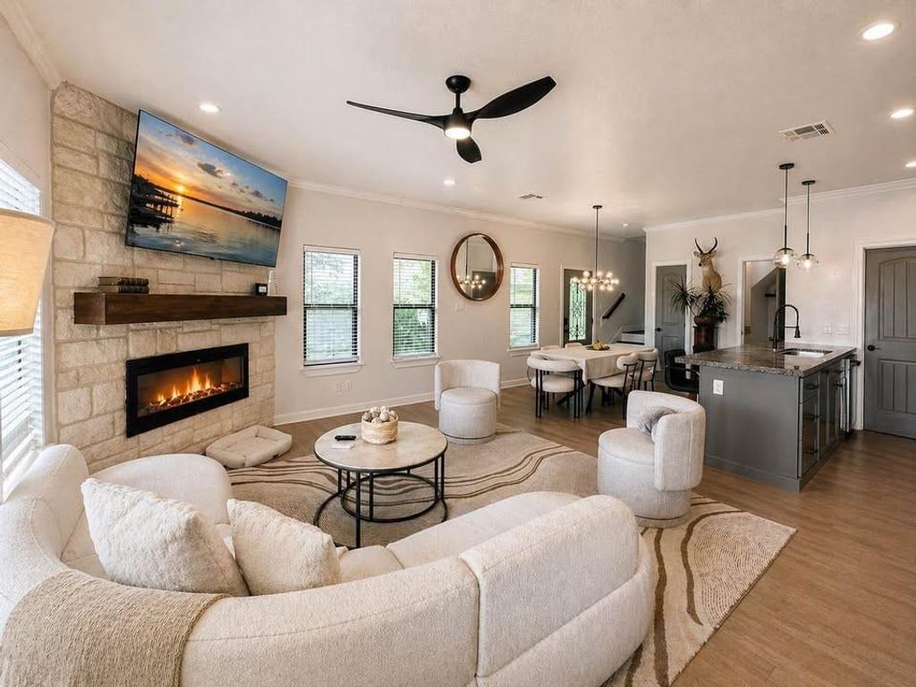 Experience elevated waterfront living with this incredible retreat in the prestigious April Sound. This luxury home showcases stunning white oak hardwood floors, custom cabinetry, and granite countertops, complemented by intricate custom tile work throughout. Designer light fixtures add a sophisticated touch, while a striking stone fireplace anchors the main living space. Thoughtfully designed for both comfort and style, the home offers seamless indoor-outdoor living with exceptional outdoor spaces perfect for relaxing or entertaining. Enjoy serene water views and all the amenities of this sought-after gated, country club community such as 27 holes of golf, multiple pools, fitness center, parks, and more all on the shores of Lake Conroe.
