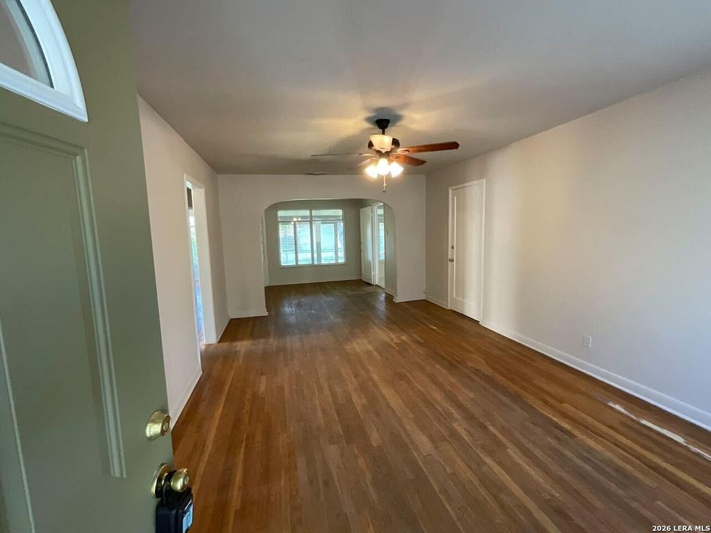 Charming three-bedroom, one-bath single-family home offering 1,095 sq ft of living space. Features beautiful hardwood floors, a rock exterior, and a fenced backyard-perfect for added privacy and outdoor enjoyment. Recently painted with updates throughout, this home offers classic old-world charm and is clean, well-maintained, and move-in ready. Equipped with central heat and air for year-round comfort. Conveniently located near shopping, walking trails, and everyday amenities.