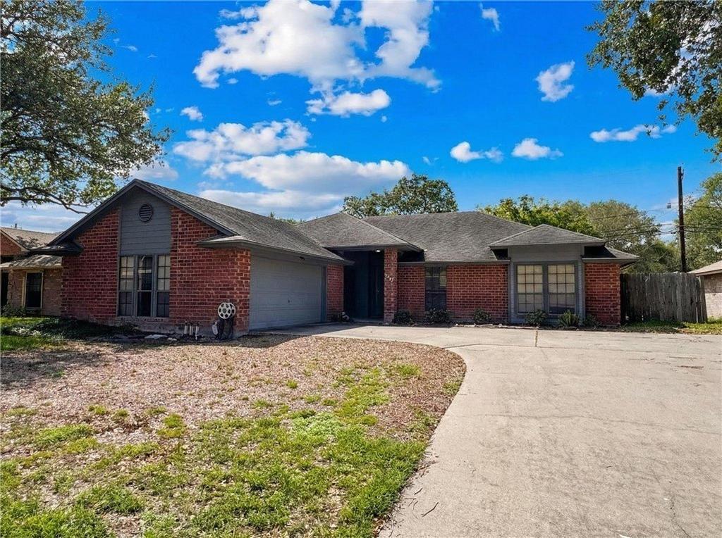 Located in the established Sugar Ridge subdivision on the Southside of Corpus Christi, this 3-bedroom, 2-bath home offers approximately 1,824 square feet of living space with a functional and versatile layout. Built in 1984, the home features two living areas and two dining spaces, providing flexibility for a variety of uses. The kitchen is both stylish and functional, featuring updated countertops (possibly marble), soft-close drawers, ample cabinetry, a pantry, and stainless steel appliances, including an electric range/oven and a built-in wine refrigerator. This space serves as a central hub for everyday living and entertaining. The main living area showcases a large vaulted ceiling and a wood-burning fireplace, creating an open and inviting atmosphere. Just off the dining area, a separate flex space offers the perfect option for a home office, craft room, or additional sitting area. Additional highlights include a front wrap two-car garage and a covered patio, providing outdoor space for relaxation or gatherings. The home is situated in a well-established neighborhood with mature trees and convenient access to shopping, dining, and major roadways. A great opportunity to personalize and make this home your own in a desirable Southside location. Selling AS-IS. REO Property