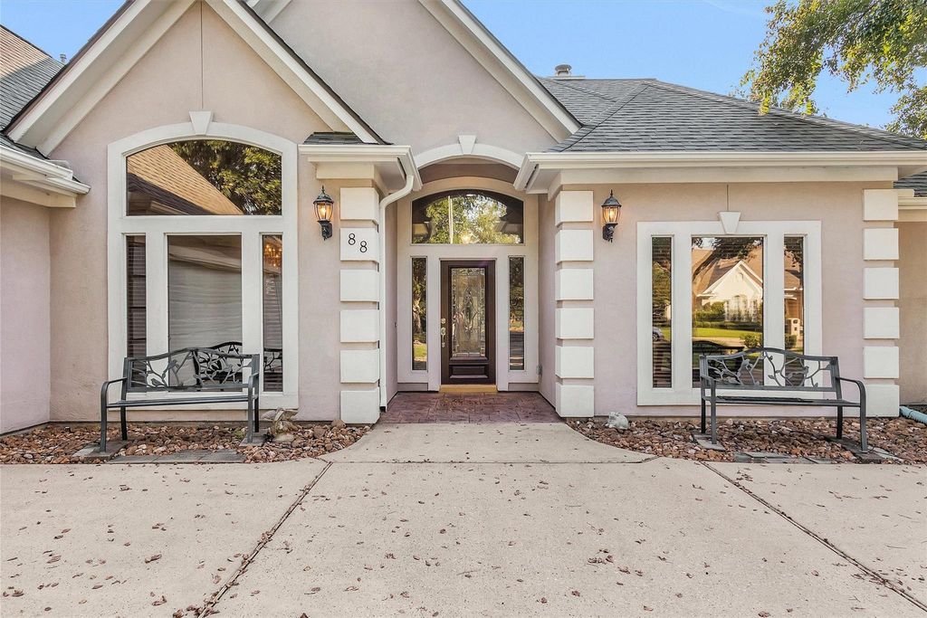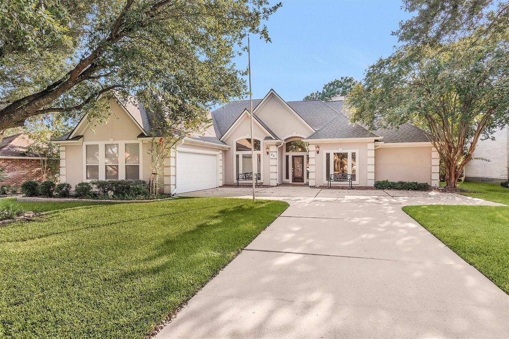 Welcome to this amazing one-story home located in the gated, golf club community of April Sound. Plenty of room with 3 bedrooms, a study with built-ins, 2.5 baths, and an oversized garage which has an additional area for a golf cart. Wood floors throughout with tile in the kitchen and baths. High ceilings, arches, and crown molding add to the charm of this home. Relax in the den which has custom built-ins on each side of the gas fireplace. Windows along the back of the home allow beautiful views of the amazing golf course from almost every room. Granite countertops, double ovens, and an island are just part of the allure of the kitchen. Primary bedroom with ensuite bath, his & her closets, separate shower and jetted tub. Secondary bedrooms with a Jack & Jill bath. Two water heaters. Roof 2017. Side entry garage with extended concrete for extra parking.