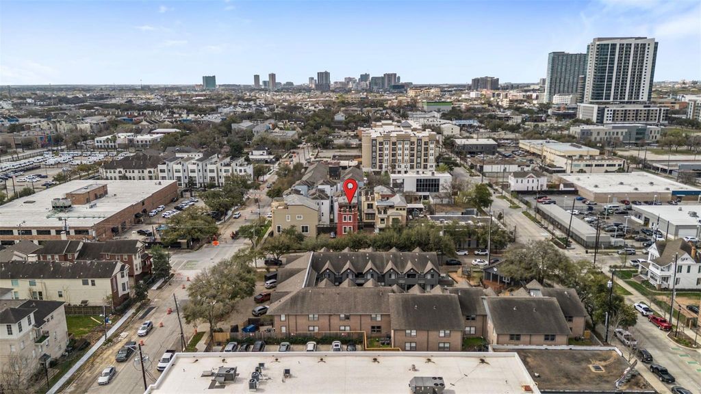 Experience the ultimate urban lifestyle in the heart of Midtown! This beautifully maintained, gated single-family home offers both a private pedestrian entrance and a remote-operated driveway gate for secure garage parking. The interior features a stunning wood staircase leading to an open-concept kitchen and living combo with classic wood flooring throughout main living areas. NO carpet! Custom accent lighting throughout (stairways, toe kicks in kitchen, behind mirrors in primary bath.) Gorgeous panoramic view of Downtown Houston. Walk to Metro Light Rail. Schedule your tour today and enjoy the 4th of July fireworks on the top deck with friends and family!