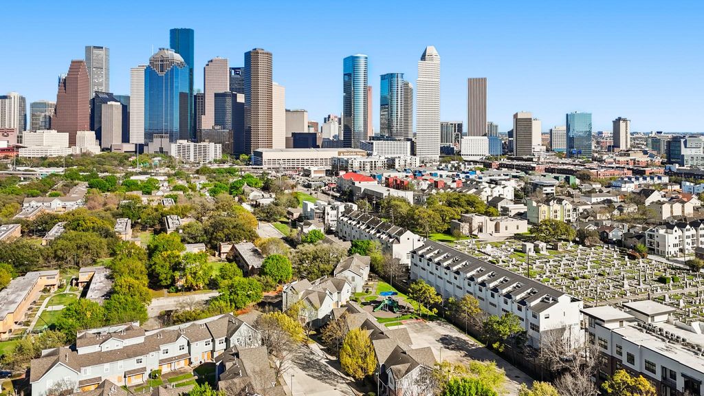 Welcome to 1304 W Dallas Street, a stylish four-story townhouse in the desirable Hardcastle Townhomes community. The open-concept main level features hardwood floors, spacious living and dining areas, and a well-appointed kitchen with ample cabinetry. A sleek fireplace serves as a modern focal point, adding warmth and character. The third-floor flex room with built-in shelving is perfect for a home office or study. The primary suite offers a peaceful retreat with abundant natural light, complemented by a spa-like bathroom featuring dual vanities, a soaking tub, separate shower, and a spacious walk-in closet with custom shelving. The fourth-floor bonus room offers versatility for a home theater, or creative space. Enjoy multiple living areas and a private rooftop terrace with stunning Houston skyline views. Ideally located within walking distance to downtown, Buffalo Bayou, and Montrose, with easy access to major highways, dining, parks, and entertainment.