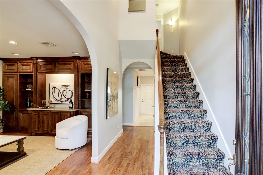 Well maintained patio home on quiet, tree-lined cul-de-sac street in heart of Bellaire! Gracious entertaining areas downstairs.. High ceilings, crown molding, art niche. Numerous updates, granite counters, frameless showers, travertine floors & baseboards, hardwoods. Side yard tropical paradise! Water sprinkler system. Centrally located.