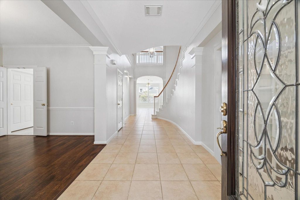 Beautiful home for lease in a gated community on a quiet cul-de-sac. This pristine two-story offers a spacious layout with a large primary suite featuring two walk-in closets and an updated ensuite bath. Upstairs includes three bedrooms, two full baths, and a generous game room. The main level features a formal dining room, private office, and an open kitchen that flows into the living room with custom built-ins and a cozy fireplace. Located in Lakes on Eldridge North, desirable gated community offering lakes, walking trails, pools, tennis courts, and playgrounds. Move-in ready and beautifully maintained.