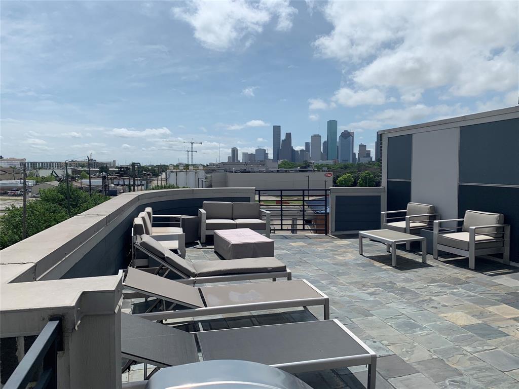 Sleek 1-bedroom condo with views of the downtown skyline! Contemporary styling with 10' ceilings, granite counters, wooden flooring, & stainless steel appliances. Walking distance to Buffalo Bayou Park, Washington Ave, and HEB! Complex includes controlled-access parking garage with 1 reserved space, fitness center, club room, and rooftop terrace with panoramic views of the city!