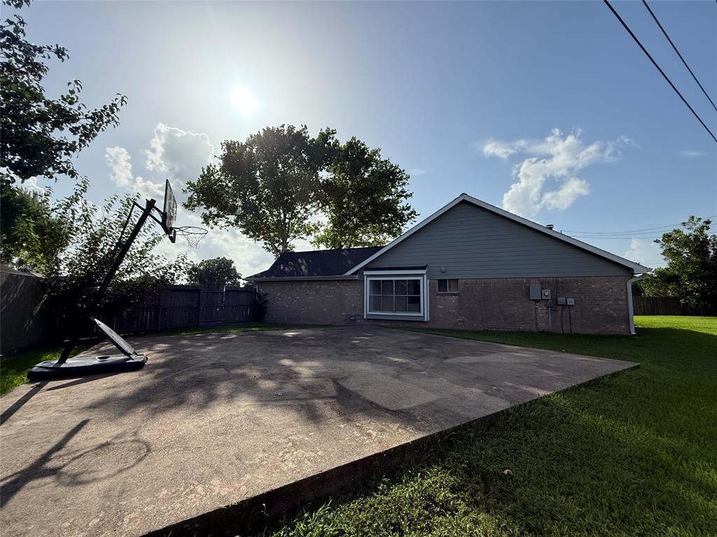 HUGE BACK YARD!! Sitting on a large cul-de-sac lot, it offers an open concept living room-dining room-kitchen combo. New kitchen Cabinets with new countertops and backsplash!! Bathroom has been redone a MUST SEE!! New Flooring throughout the house and fresh paint. The primary bedroom is on one side of the home with an en-suite bathroom and walk-in closet, while on the other side are three bedrooms, two of which offer walk-in closets, and a refinished guest bathroom in the middle. Back Yard includes a large slab currently being used as a basketball court.