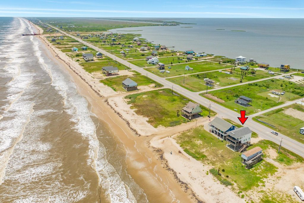 Unobstructed beach views from this magnificent beachfront property. This home boasts a unique floor plan with 3 bedrooms and 2 bathrooms. The top floor features a chef’s kitchen with a Wolf gas range with double ovens, beautiful custom cabinetry including pot/pan drawers, quartzite counter tops, island with breakfast bar kitchen, instant hot water feature, large butler’s pantry and dry bar. The dining area has built-in seating with additional storage spaces. The living area opens onto a covered deck and includes a gas log fireplace. The primary suite has luxurious primary bathroom with separate shower and soaking tub. The lower level serves as guest quarters with 2 bedrooms, 1 bath, a den, and a kitchenette with a pass-through window to a screened porch, leading to a covered deck. This level also offers a second set of washer/dryer. Other features include: elevator to all floors, Generac generator, and walking distance to the new, soon to be Rollover Pass Pier!