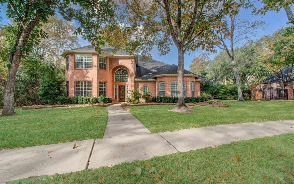 LOWEST PRICE per sqft & the LARGEST LOT in one of Katy's most desirable communities. This is a rare OPPORTUNITY to own a spacious home on a HALF-ACRE WOODED LOT with a beautiful POOL and unbeatable highway access. Perfect for those seeking PRIVACY, the property features a GREENBELT on one side and mature trees throughout. Enjoy the premier amenities of Grand Lakes—scenic trails, tennis, and resort-style pools. The stately brick exterior opens to a flowing floor plan featuring TWO BEDROOMS ON THE FIRST LEVEL, ideal for multigenerational living. A private home office with custom built-ins is on the first floor, formal dining, a spacious breakfast area, and an open-concept kitchen/living space. Functional extras include an oversized laundry room and a three-car garage with a GATED SIDE ENTRANCE and EXTENDED DRIVEWAY. Upstairs, three additional bedrooms are paired with a LARGE GAMEROOM and a versatile bonus area perfect for a homework or crafts station. Zoned to the acclaimed Katy ISD.