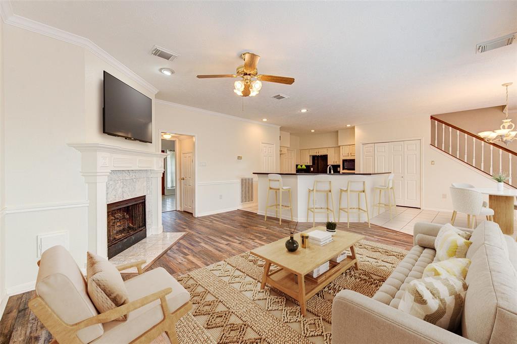 Welcome to this stunning property in a prime location with an upstairs garage studio! The home boasts beautiful landscaping, an open concept kitchen with granite countertops, a cozy fireplace in the family room, and a spacious deck in the backyard. The master suite features dual vanities and a whirlpool tub, while the upstairs game room is perfect for gatherings. With wood flooring in some bedrooms, plantation shutters in the dining room, and a long driveway leading to a detached garage, this home is a must-see for those seeking a spacious and well-appointed living space.