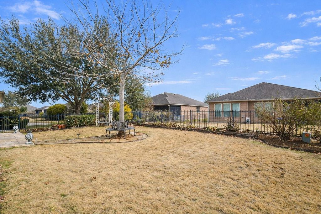 Well-maintained home in the heart of Del Webb with upgrades in place for a seamless move-in. This 1-story residence features crown molding throughout, a chef-inspired kitchen with double ovens, gas stove, and ample cabinetry. The newly purchased Smart Samsung refrigerator is negotiable. The spacious living and dining areas flow effortlessly to an extended stamped-concrete patio overlooking a fully fenced backyard with a full sprinkler system, perfect for entertaining or relaxing. Additional highlights include an alarm system with ring camera, 2-car plus tandem garage, and thoughtfully designed spaces that combine comfort, style, and functionality throughout.