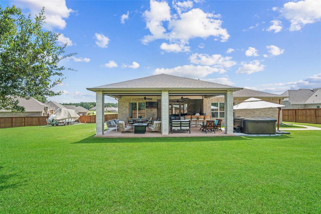 Welcome to your perfect oasis at 6034 Leeward Island Drive in Conroe, TX! This delightful 4-bedroom, 3-bathroom home is set on over half an acre in a gated section, ensuring privacy and exclusivity. Revel in the outdoor splendor with LED color-changing lights and a huge covered patio complete with outdoor kitchen w/seating and a hot tub, all backing up to a serene reserve. Additionally, there's ample boat parking for your watercraft. Inside, the home features a water softener for added comfort, and a spacious 4-car garage to accommodate your vehicles and storage needs. The community offers fantastic amenities, including pools and a boat launch, adding to the lifestyle appeal. Whether you're hosting on the patio or enjoying the community's recreational offerings, this home provides a unique combination of comfort and convenience. Home includes a whole house generator, lightning rods and 4" gutters. Energy efficient and room for a pool!