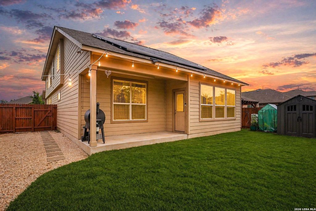 Assumable VA Loan at 2.5%! Qualified buyers can sidestep the typical mortgage process and assume the seller's existing loan-saving thousands annually! Set within the highly desirable Copper Canyon community in Bulverde, this exceptionally well-maintained two-story residence offers a refined balance of space, functionality, and thoughtful upgrades and accents. Spanning 3,534 square feet, the home features 5 bedrooms, 3 full baths, and 1 half bath, designed for both everyday living and elevated entertaining. A welcoming entry opens to a formal dining room and dedicated office, creating a versatile layout for gatherings and productivity. The home then flows into an expansive open-concept living area, where wood-look tile flooring, abundant natural light, and a seamless connection between the kitchen and living room create a warm, cohesive environment. The kitchen is equipped with gas cooking and ample space to gather. The primary suite is privately situated on the main level, offering a q