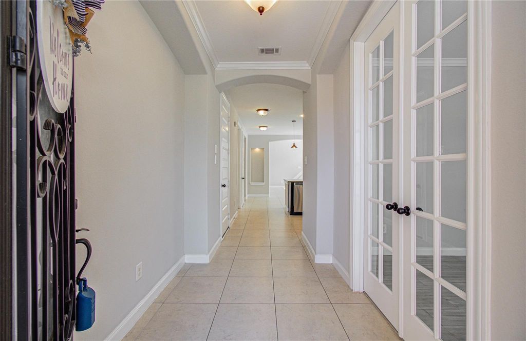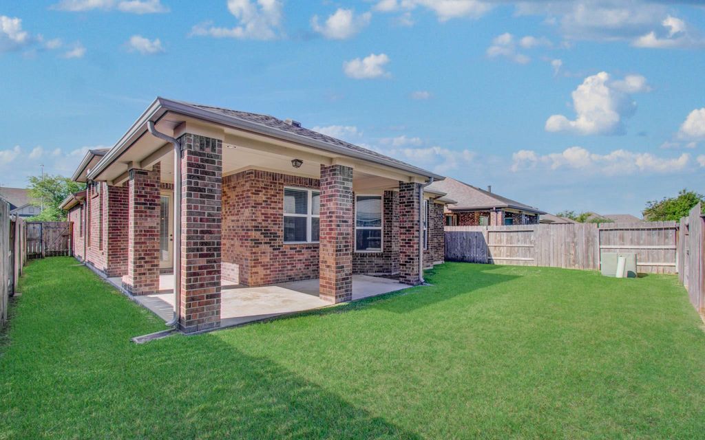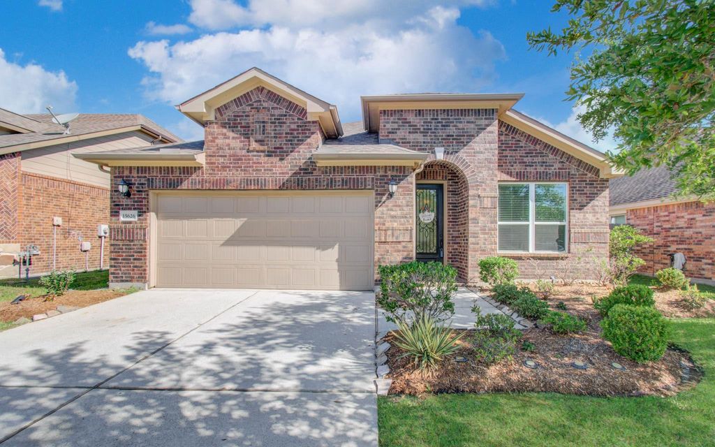 Beautifully maintained one-story ALL-brick home with open concept and exceptional curb appeal! Features an elegant arched entry and stunning 8-ft leaded glass front door and tiled flooring throughout the entire home. This home offers 3 bedrooms plus a study (optional 4th bedroom). The modern kitchen showcases an island with pendant lighting, stainless steel appliances, rich brown cabinetry with hardware, and a stylish subway tile backsplash. Entire home freshly painted 2026. The spacious living room is filled with natural light and features a cozy fireplace, perfect for cooler days. The primary suite is a standout, offering a private sitting area ideal for a home office or gym, along with direct access to the L-shaped covered patio. The en-suite bath includes a soaking tub, separate shower, dual vanities, and two separate his and hers generously sized walk-in closets. Zoned to highly sought after Tomball ISD schools!
