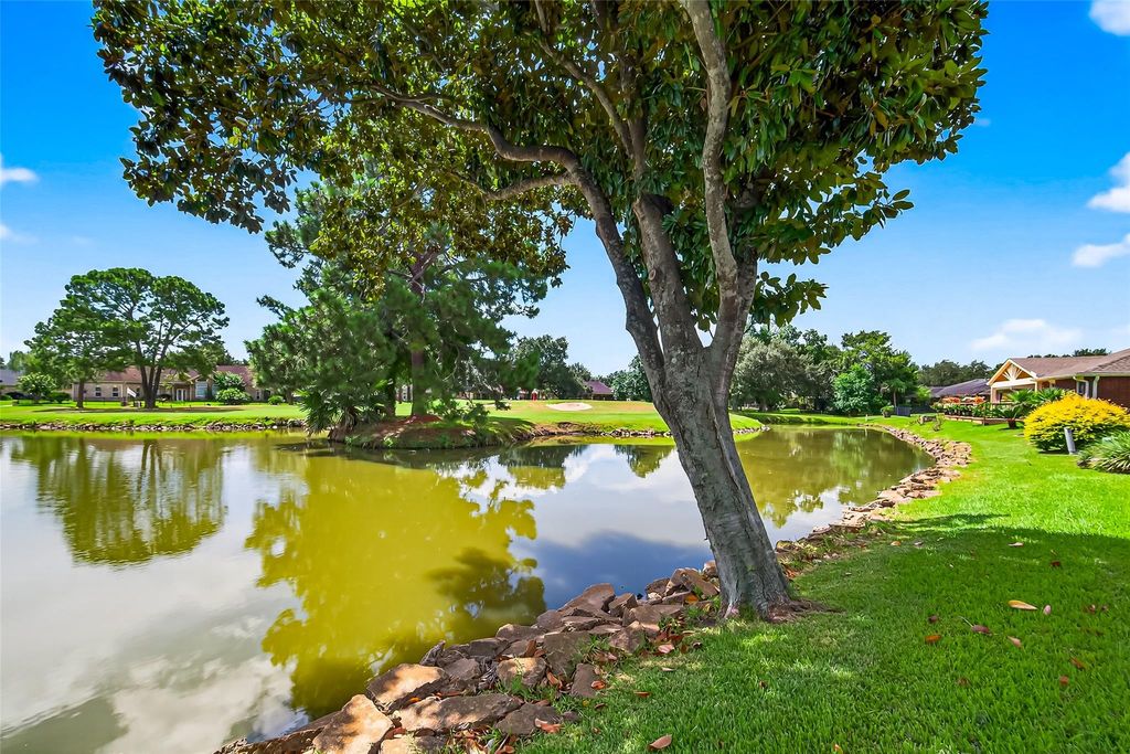 Wonderful home in one of the best 55+ communities! This fantastic property offers views of the Pearland golf course from your glassed in sunroom, pond and wildlife sightings included! For outdoor living there is a spacious wood deck with seating and roll out awning. Features inside the house include luxury vinyl flooring throughout, built in bench seating in the breakfast nook, gas log fireplace in living area, formal dining room, office with additional storage, full house Kohler generator, solar panels, sunroom has impact resistant windows and AC/heat, jetted garden tub in primary bath, oversize garage with attic access that has flooring for storage and so much more! Countryplace amenities include the Carriage House offering fitness room, billiard room, library, social hall for events, huge swimming pool/hot tub and sports courts. Close to shopping, restaurants and medical facilites. Come make this your new home!