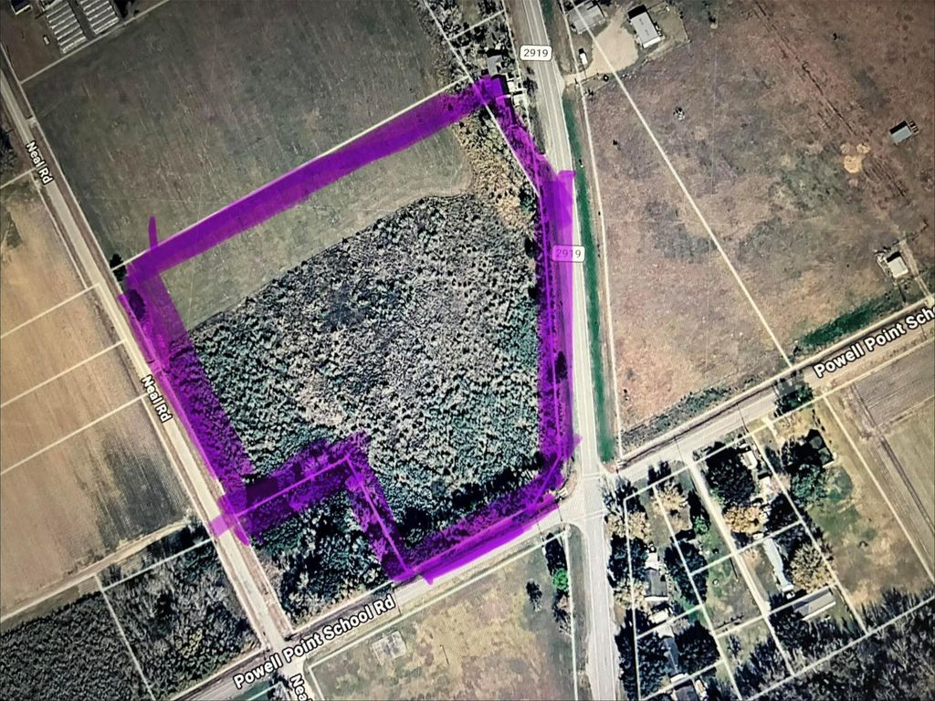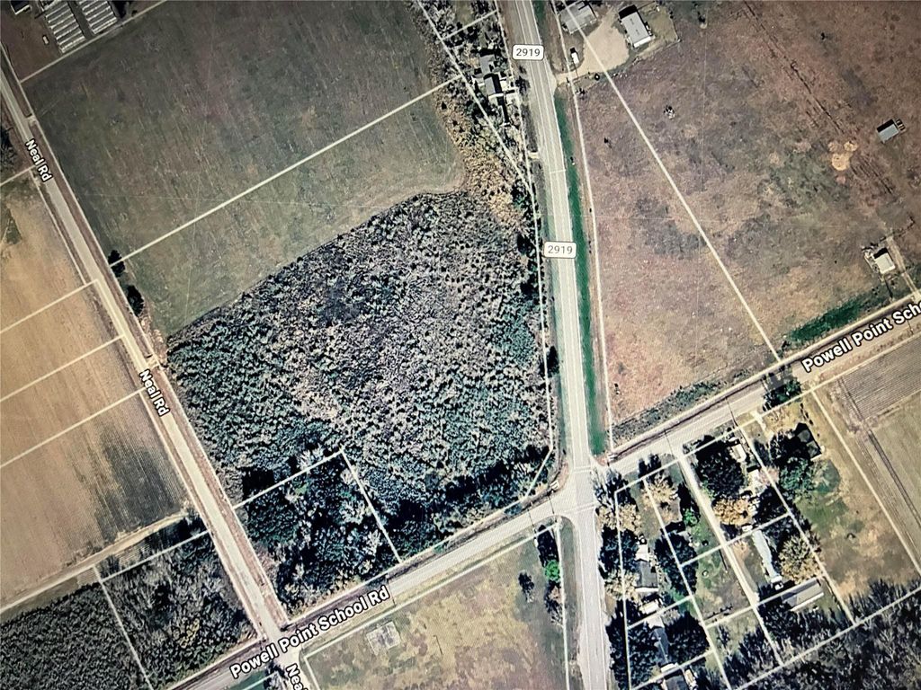 Prime corner location 3 sides of road frontage (FM 2919, Neal Rd, Powell Point School Rd) High visibility and easy access Great opportunity for investment, development, or country living . Sellers may have the survey availabilty /may not iF yes we may load it up to HAR later .
