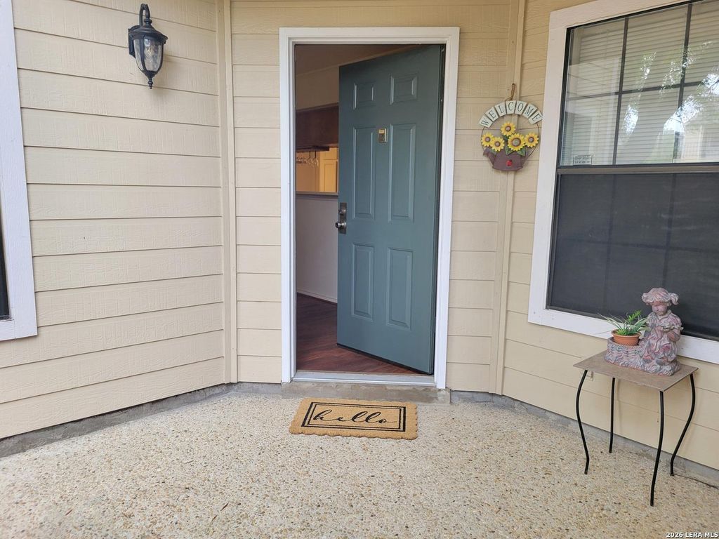 WELCOME HOME TO ONE OF THE BEST CONDOS AT THE BRIDGES! VACANT, single story (no steps) that is ready to be your home. Two bedrooms, two full baths, convenient parking that is only a few steps from your front door, private gated patio with room to sit outside. Enter into an open living room with a wood burning fireplace for the perfect ambiance. Natural light comes through to create a light and airy feel. Walk out to the patio through the single French door for a taste of outdoor living and more privacy. Bedrooms are spacious with generous closet space and each has a full bath to complement them. Kitchen is a delight with solid counter tops - nice and very well kept - washer/dryer and refridgerator are also included! Did I mention the location...within 5 to 10 minutes to Med Center, USAA, Valero HQ and UTSA, If you like the best of restaurants and shopping, The Rim, La Cantera and so many more are minutes down the road. Check this out today...you'll love all it has to offer...