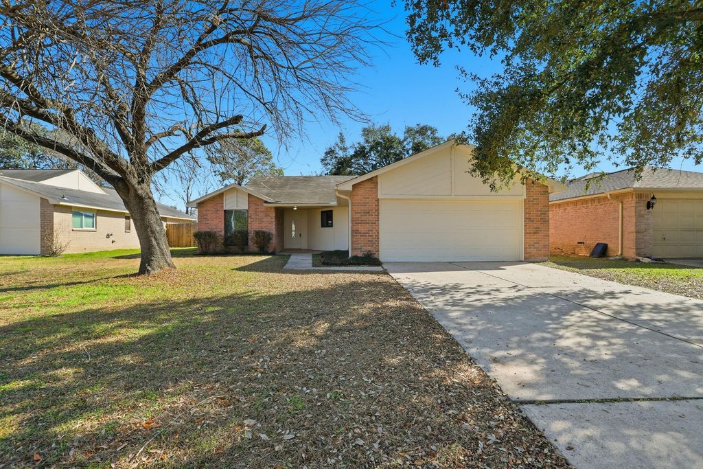 This single-story home is located in a quiet Northwest Houston neighborhood with convenient access to major roadways, shopping, and everyday amenities. The floor plan offers three bedrooms and two full bathrooms, with a split layout that provides added privacy. The living area flows into a combined living and dining space, creating a functional layout for daily living. Additional features include an attached two-car garage, fenced backyard, and exterior storage shed. The property presents an opportunity for buyers seeking a home with solid layout potential in an established community.