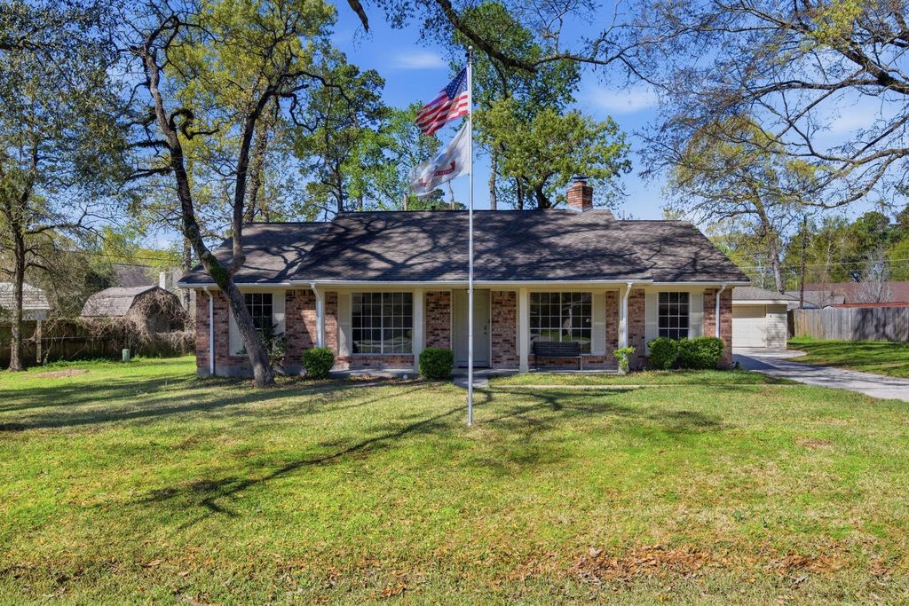 Come see this charming single-story home featuring 4 bedrooms and 3 baths, situated on a spacious lot in Spring, just minutes from The Woodlands. The inviting floor plan includes formal living and dining rooms and a family room featuring a gas/wood-burning fireplace, perfect for relaxing or entertaining. The kitchen boasts white cabinetry, granite countertops, wood tile flooring, and breakfast area perfect for casual dining. The primary bedroom offers a private retreat with barn door leading to the primary bath, which features a large shower and walk-in closet. A large bedroom at the back of the home with private bath and a soaking tub, making it ideal for guests or multigenerational living. Step outside to enjoy the backyard with plenty of room to relax, play, or entertain. The home is zoned to The Woodlands College Park High School and ideally located near The Woodlands shopping and amenities, with quick access to Interstate 45 and Grand Parkway. This home is a must see!