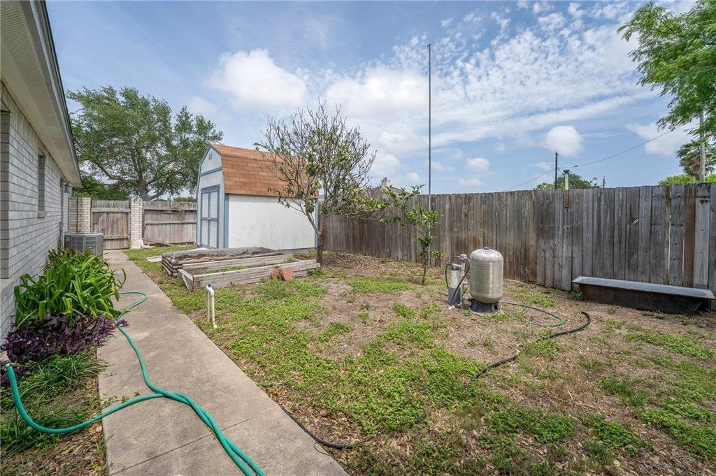 Welcome to this charming 3 bedroom, 2 bathroom brick home with a split floor plan and beautiful trees and landscaping. The primary suite is spacious and has a large walk-in closet, plus its own private door that leads out to the covered back patio. The kitchen has a brand-new dishwasher and stove, and the laundry room is right off the kitchen with a pantry for extra storage. The water heater was replaced in 2025. Because of city water restrictions, lawn watering is limited, but this property has its own 120-foot water well with irrigation lines already run through the yard, which will allow the new owner to water whenever they need to. There''s also a 10x10 storage shed in the backyard for additional storage. This home is just a short distance from NAS-CCAD, Flour Bluff ISD, and North Padre Island. Schedule your showing today!