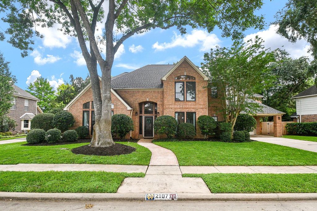 2107 Pecan Trail Dr is listed for sale at $ 649,900. The Single-Family property has 4 bedrooms, 3 Full Bathrooms, 1 Half Bathroom, 4341 square feet and was built in 1990. The lot size is 10941 Square feet. ##BR##Welcome to this Beautifully Updated Home in the desirable Pecan Forest Section of Pecan Grove. Located on a large lot with mature trees, pool and side yard for entertaining. This home features beautifully stained wood flooring, a fireplace, numerous living areas including a family room, living room or office, a game room and flex space located above the garage that has endless possibilities. Open concept island kitchen has updated appliances, walk-in pantry and an abundance of cabinets. The Primary Suite is located on first floor with sitting area, private door leading to backyard, as well as updated primary bath featuring soaking tub, shower, two vanities and separate closets. Upstairs you will find generous size Bedrooms with ample closet space. Over size game room with wet bar and a flex space that can be used as workout area, storage or an additional office space. Great family community offering low taxes, located near restaurants and shopping with easy access to freeways and hospitals.