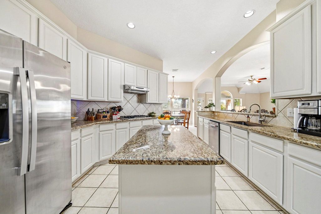 WATERFRONT LIVING BEHIND THE PRIVACY GATES! 3-bedroom, 2-bath, 2-car garage home with a study in a gated community, backing to the lake. This move-in ready home features high ceilings, beautiful architectural details, extensive crown molding, and wood-look laminate flooring throughout with no carpet. The kitchen offers stainless steel appliances and opens to an inviting layout designed for easy living and entertaining. A striking two-sided fireplace creates a warm focal point between the formal dining room and living room. The open floor plan flows seamlessly to the covered back patio, where you can relax or entertain while enjoying peaceful lake views. This one is truly special and will not last long.