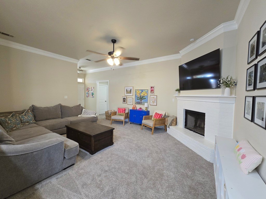 Adorable and move-in ready 3-bedroom, 2-bath home in desirable Legends Park! This charming home features an open floor plan w/high ceilings, a spacious living, & cozy corner wood-burning fireplace. The kitchen offers newer stainless appliances, granite countertops, & a pantry. The lg primary suite includes a jetted tub, separate shower, & dual walk-in closets. Enjoy a covered patio overlooking a fun backyard w/playground equipment & checkerboard patio. Recent updates include new carpet, fresh paint, newer roof & fence, & RO system. Walking distance to park and elementary school.