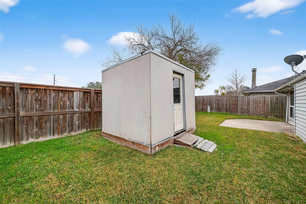 Welcome home to 15910 Mission Village Drive! This inviting home in the heart of Mission Bend offers a blank slate for a new owner or investor ready to make it their own. The property features a unique layout ideal for entertaining with a formal entryway, atrium, and an open concept dining / living / breakfast room combination built around a chef's kitchen featuring an island, double ovens, and separate gas cooktop. Perfect for get-togethers and holiday celebrations! The garage has been converted to a fourth bedroom, hallway, and utility room. The roof features two separate solar panel systems to help offset utility expenses. Outside you'll find an included storage shed and no backyard neighbor. The property backs to a greenbelt with a bayou, but is NOT located in a flood zone. Call your agent to schedule a showing today!