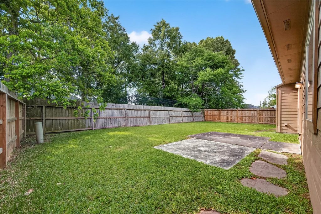 This 4-bedroom, 2-bathroom single-story home in the Pines Atascocita subdivision is located just minutes from Lake Houston and offers a well-designed layout with inviting indoor and outdoor spaces. The epoxy-finished garage includes a dedicated storage area, and the utility room provides space for a freezer or drop zone. The kitchen is filled with natural light and features like-new stainless steel appliances, a working island, and abundant storage, all overlooking a spacious living area with tiled flooring, a fireplace with gas logs, and a remote-operated ceiling fan. The primary bedroom includes double-pane glass doors leading to a private backyard patio and an en suite bath with double sinks, a separate shower, a garden tub, and a full-entry closet. The backyard offers ample space for outdoor use, with a covered patio off the breakfast nook and an additional patio accessible from the primary bedroom. This home is a must see!