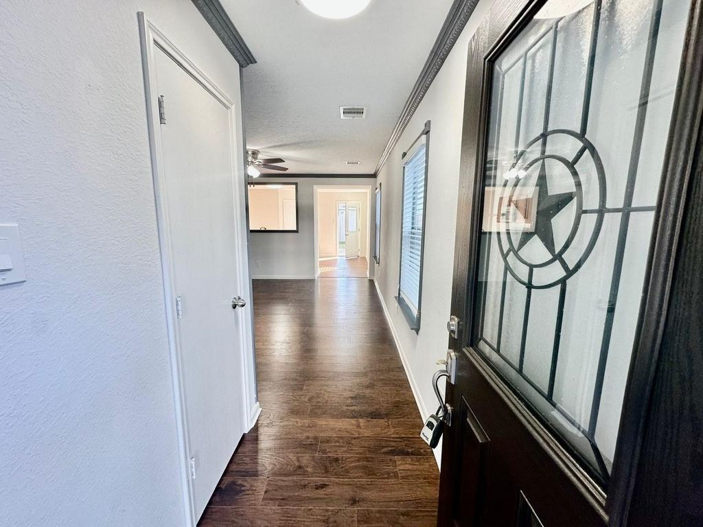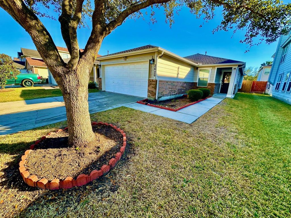 Beautiful 3 bedroom home is ready for move in! wood-look tile in the kitchen, bathrooms and laundry; laminate flooring in the living room. Large windows in the kitchen allow plenty of natural light in. This home is great for entertaining with large wall openings for views from the kitchen into the living room. Easy access to HWY 288 and Sam Houston Tollway and just minutes from Pearland Town Center.