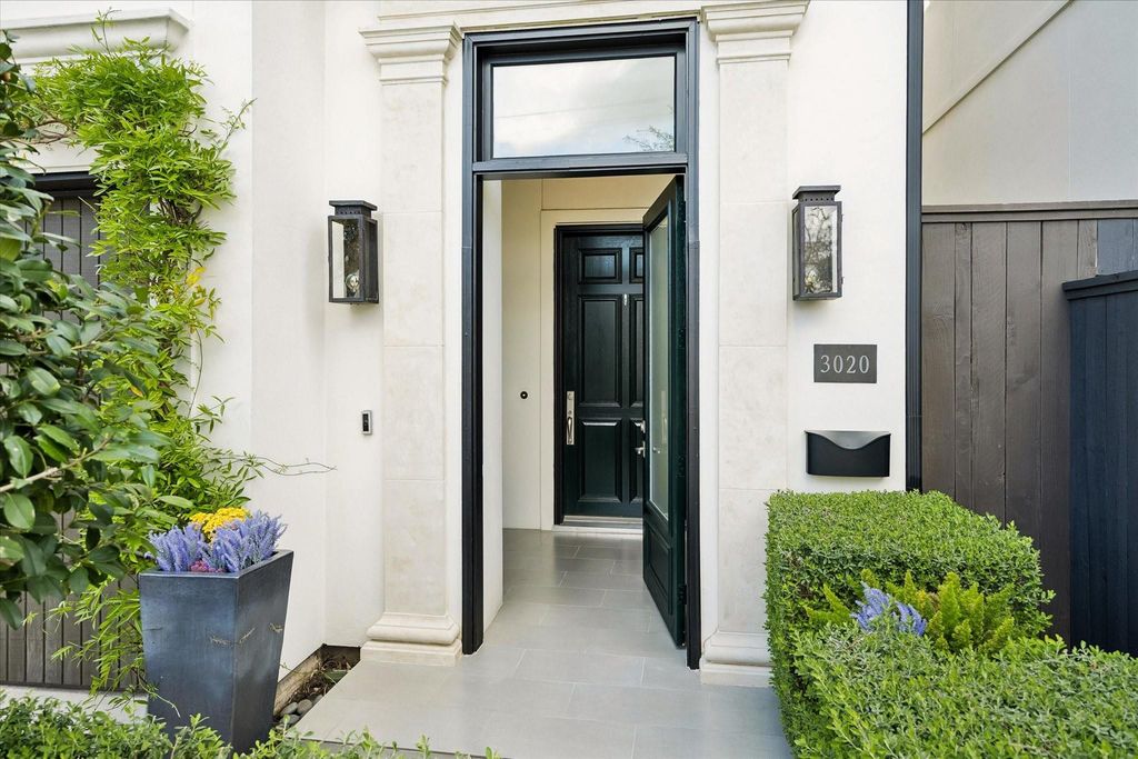 Located in Upper Kirby near premier restaurants and shopping, this freestanding 3-story home offers exceptional design and livability. A private driveway provides guest parking in addition to the 2-car garage with EV charger. Outdoor spaces include a back patio, fenced yard with turf, 2nd-floor balcony, and rooftop terrace. Copper lanterns frame the entry, opening to a gracious stair hall and first floor with 12-ft ceilings, hardwood floors, and classic wood paneling. The main level features a private study with glass-front French doors, formal dining, mudroom, and an island kitchen with a breakfast area open to the living room with gas-log fireplace and built-ins. Sliding doors lead to the yard. The 2nd floor offers an office nook, two en-suite bedrooms with walk-in closets, a large laundry, and a spacious primary suite with dual closets and a spa-like bath. The 3rd floor provides additional living area or optional 4th bedroom with full bath and access to rooftop terrace.