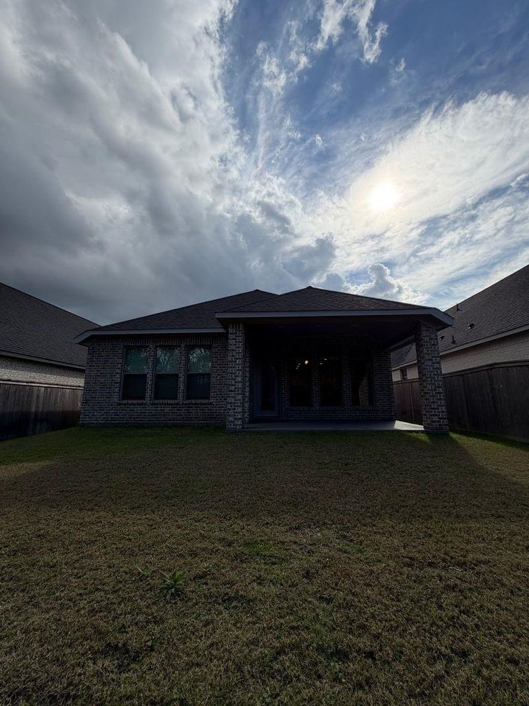BARELY LIVED IN & READY FOR MOVE-IN! Step off the front porch into an extended entryway boasting a 12-foot ceiling. A secluded guest suite is off the main hallway and features a linen closet, full bathroom, and walk-in closet. As you past the utility room you enter into the living areas of the home. The kitchen includes an island with built-in seating and a walk-in pantry. The dining area extends into the family room which hosts a wall of windows. The primary bedroom boasts three large windows. French doors open into the primary bathroom featuring dual vanities, a linen closet, garden tub, glass enclosed shower, and generous walk-in closet. Secondary bedrooms boasting ample storage and a shared bathroom complete this floor plan. Covered backyard patio. Mud room off of the two-car garage..... FLEXIBLE LANDLORD FOR THE RIGHT TENANTS & TERMS..... NO SIGN IN THE YARD
