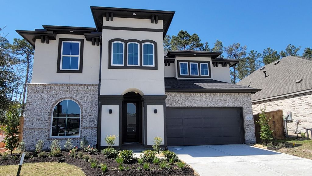 NEWMARK HOMES NEW CONSTRUCTION VERONA End of March Completion. Welcome home to 22214 Junction Peak Dr located in the master planned golf course community of The Highlands. New construction by NEWMARK HOMES. The Verona plan has 5 bedrooms w/ 2 down, 4 baths. The architecturally appealing front elevation features brick & stucco. Designer inspired luxury hardwoods located in the main living areas. The elegant family room features high ceilings. The backyard features a spacious patio with sod & a sprinkler system. The chef style island kitchen has built in appliances & extended cabinetry to go along w/ porcelain countertops. The main suite has abundance of space & leads into the spa like retreat featuring a 5' mud-set shower and stand-alone tub. Head upstairs to the game room & media room & enjoy the entertainment hotspot. Some of the energy saving standards include spray foam insulation, a tankless hot water heater, a garage located electrical panel & full gutters