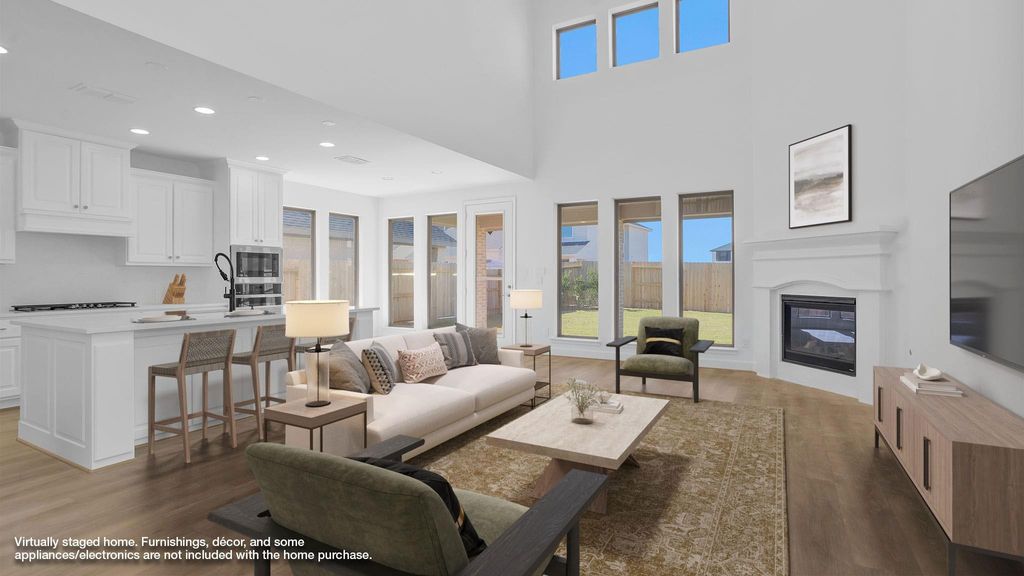 READY FOR MOVE IN!! Home office with French doors set at two-story entry. Open formal dining room just off the kitchen area. Two-story family room with 19-foot ceilings and a wall of windows. Kitchen features an island with built-in seating space, a walk-in pantry and opens to the morning area. Private primary suite with a wall of windows. Primary bath includes double doors, garden tub, separate glass-enclosed shower, dual vanities, a linen closet and a large walk-in closet. Upstairs game room and adjacent media room. Secondary bedrooms, a Hollywood bath and storage closet complete the second floor. Covered backyard patio. Three-car garage.
