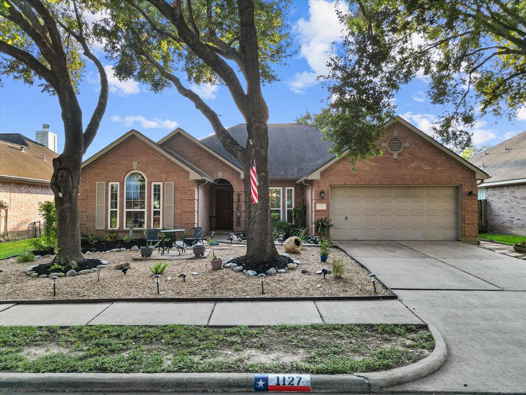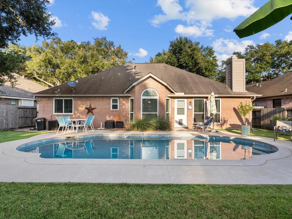Nestled in the coveted community of The Grove, this home blends comfort, style, and vibrant living. A welcoming foyer sets the tone as you enter. The thoughtfully designed split floor plan that ensures privacy with the primary suite strategically separated from the two additional well appointed bedrooms. The spa-like primary bathroom is a true retreat, featuring a glass shower, freestanding soaking tub, double vanities, and walk-in closet with custom built-ins. The spacious living room with corner fireplace seamlessly opens to a bright breakfast room and modern kitchen with granite countertops, ample workspace and a contemporary stone backsplash. A formal dining room offers an elegant setting perfect for hosting holiday gatherings. Step outside to enjoy the outdoors on the sundeck or take a dip in the sparkling swimming pool. Additional features include a storage shed, ideal for pool toys or gardening essentials Plus, this home is generator ready.