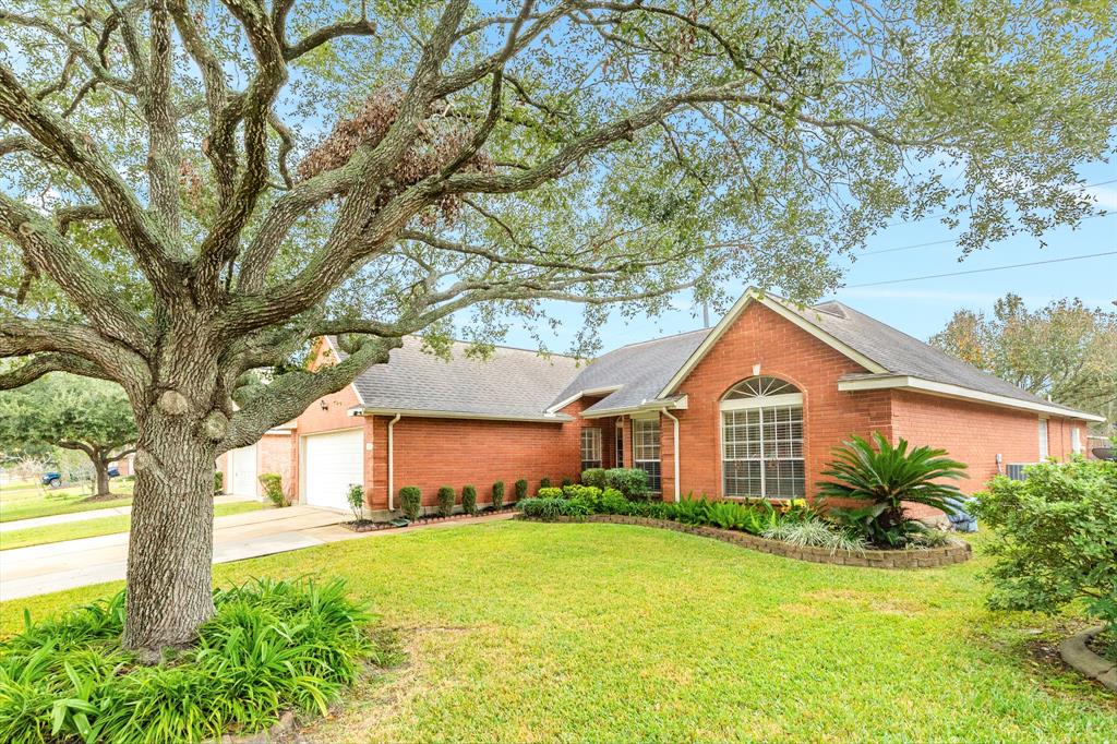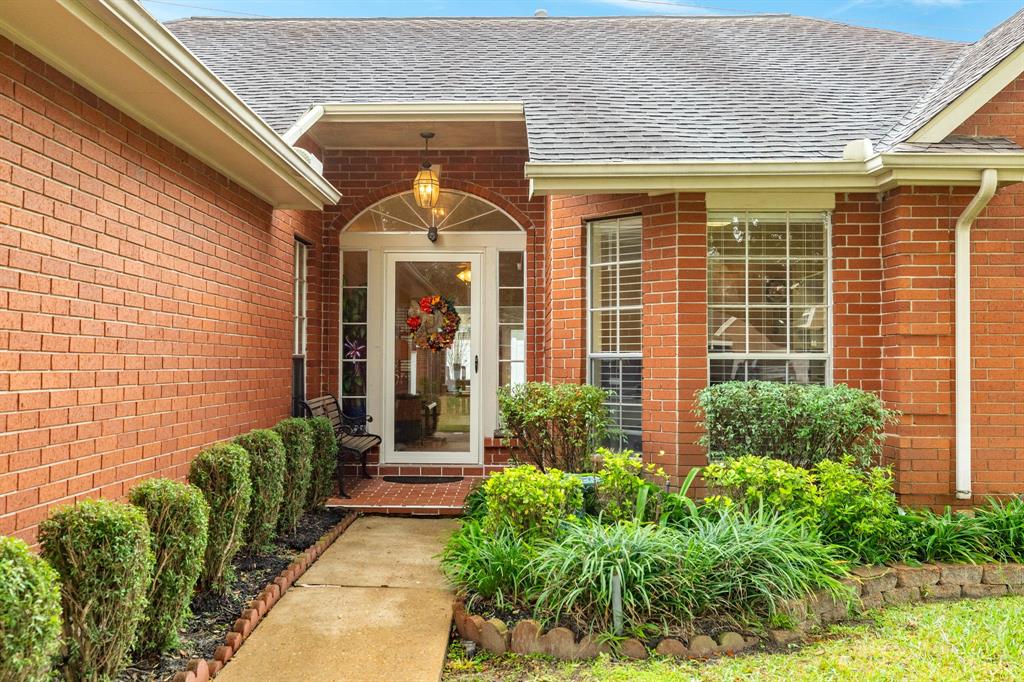 Welcome to your meticulously maintained and updated home in the highly desirable active 55+ golf course community. One owner must be 55+. The home features a spacious family room with built in shelves & cabinets, adjacent to the kitchen and overlooking a finished sunroom w/ hurricane rated windows. Sit & relax with your favorite drink in the sunroom or outdoor patio. Large kitchen with quartz counters, chef prep island, abundance of counter and cabinet space. Spacious primary suite with vaulted ceiling, updated bath by Re-Bath, large walk-in shower, dual vanities w/ engineered stone, WC is wheelchair accessible. Community amenities include an 18-hole golf course, exercise rooms, game room, library, meeting rooms; Olympic size swimming pool, lighted tennis courts, 24x7 manned security gate, picnic pavilion, scenic lake to sit and relax or walk for exercise. Conveniently located to nearby shopping, restaurants, Medical center & SH288 & BW8. 2018 Water heater, 2017 Roof, 2015 HVAC