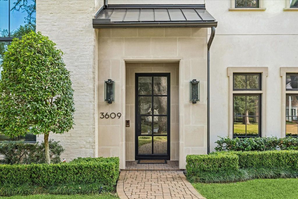 Located in prestigious River Oaks, this elegant home offers luxury living throughout. Soaring ceilings and white oak floors highlight the open-concept design. The expansive family room flows into the gourmet kitchen with oversized island, Miele appliances, butler’s pantry, and climate-controlled wine room. Upstairs, the primary suite features a sitting area, large walk-in closet, and spa-like bath. All secondary bedrooms include en-suite baths and walk-in closets. Third-floor flex space with bar is ideal for a fifth bedroom, office, or media room. Features include elevator, Lutron lighting, Control4 smart home system, and designer finishes throughout. Oversized garage with EV charging and quarters above. Outdoor living includes manicured lawn and covered loggia with summer kitchen, Coyote grill, mini fridge, and sink—perfect for entertaining.