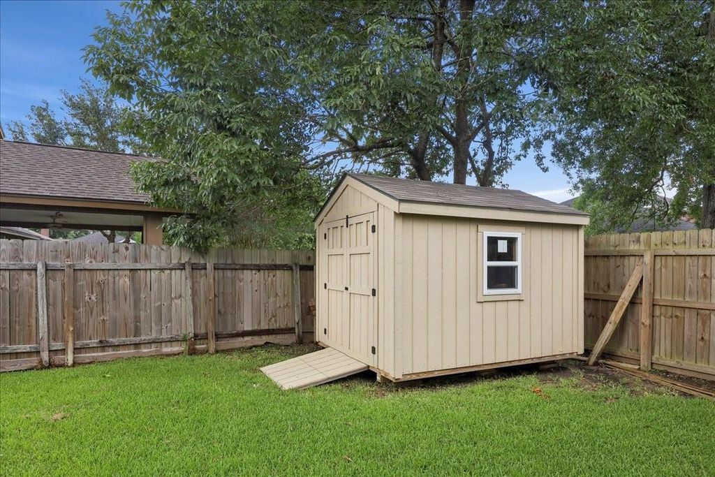 Prepare to be WOWED!! This gorgeous home is nestled in a cul-de-sac, just blocks from Regina Howell Elementary. Soaring ceilings &tons of natural light helps showcase the extensive updates. Wood-look tile flooring throughout the first level, and luxury vinyl plank upstairs; no carpet. The Living Rm flows seamlessly into the Dining Rm, making entertaining a breeze. Then step into the updated Kitchen, complete with island work center, plus a 2nd bar with storage, quartz countertops, custom cabinetry, farmhouse sink, stainless appliance packing, including a drawer-style microwave. Cozy Den is home to the wood burning fireplace, and the Sunroom with sliding doors, also makes a great space for a playroom, or other hobbies. Up the grand staircase you'll find a huge Master Suite with 2 closets &gorgeous Master Bath, complete with oversized tile shower. Hall Bath has also been nicely updated. Patio is home to a pretty Pergola which will remain, along with the storage shed. Roof replaced 2023.