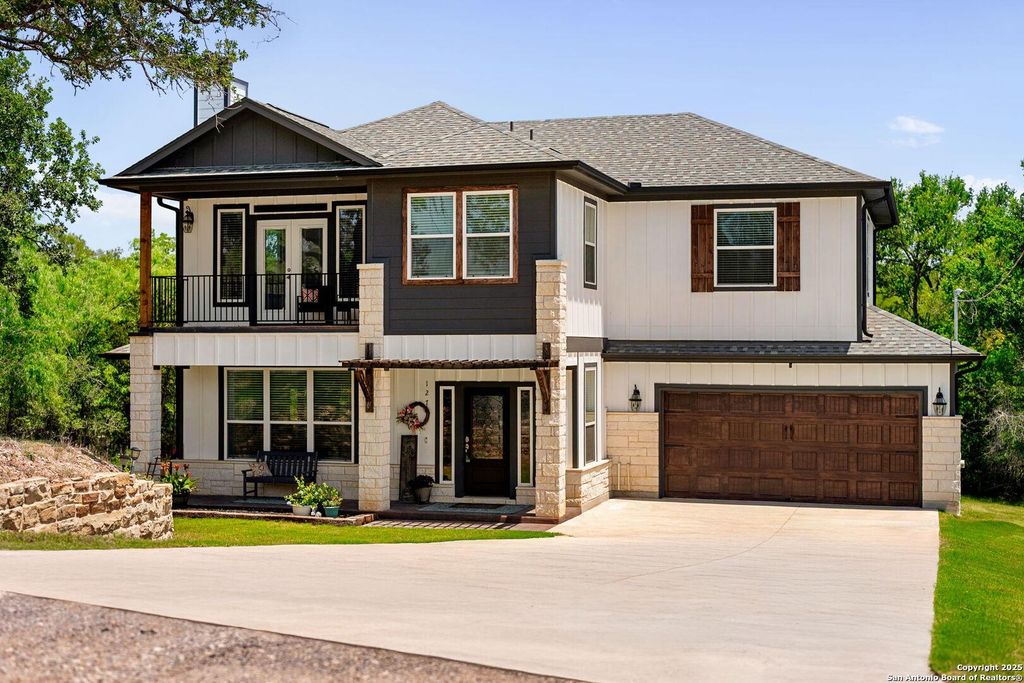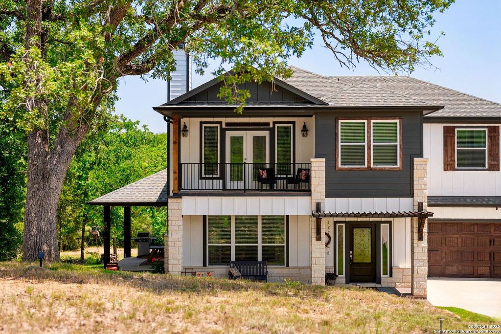 Tucked away in the peaceful beauty of Tahitian Village in Bastrop, this spacious 3-bedroom**Optional 4th bedroom guest space**, 2.5-bath home offers a perfect blend of comfort, convenience, and modern living. Designed with thoughtful details, this residence provides ample space for relaxation, entertaining, and enjoying the natural surroundings. Step inside to an inviting open-concept living area, anchored by a cozy fireplace and large windows that fill the space with natural light. The kitchen, featuring a center island, stainless steel appliances, and granite countertops, flows seamlessly into the dining area-ideal for family meals or hosting friends. A hallway off the foyer leads to a powder room, walk-in pantry, laundry room, and mudroom to keep life organized. French doors open to a covered patio, perfect for morning coffee or evening gatherings while overlooking the tranquil, tree-lined backyard. The expansive master suite is a true retreat, complete with a private balcony, a spa